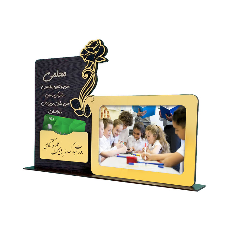 تندیس روز معلم با جای عکس و کارت هدیه – محصول اختصاصی چاپ و برش لیزری پ گرافیک (فومن)
