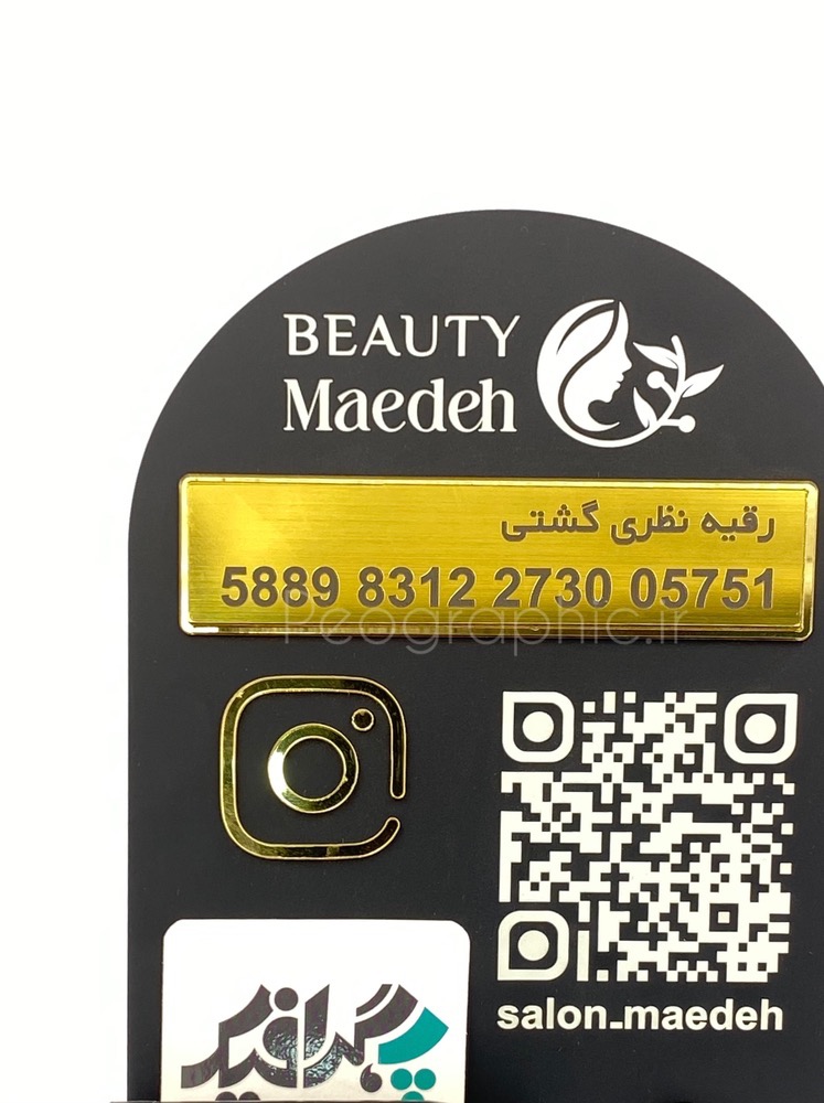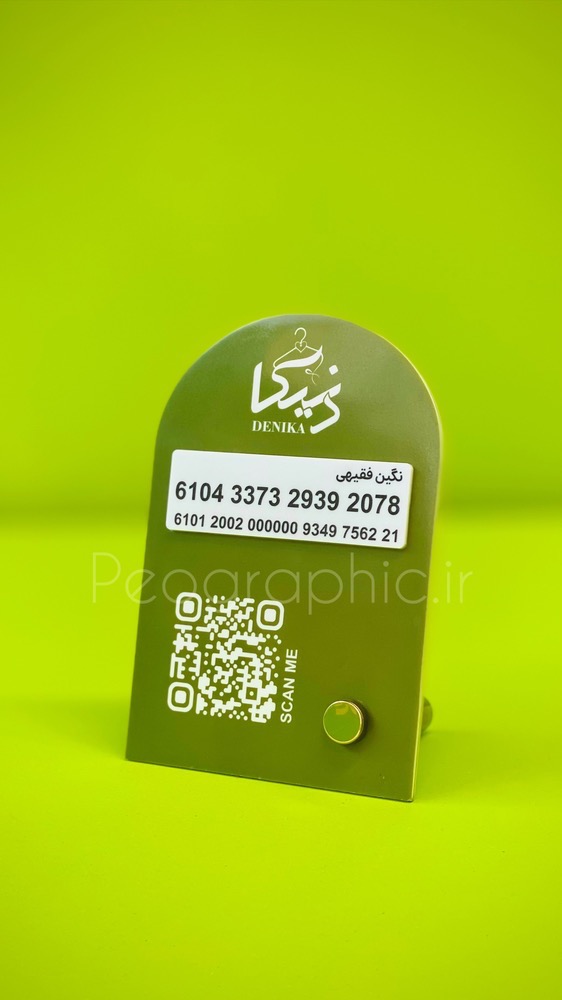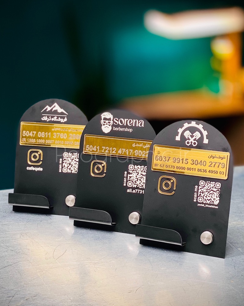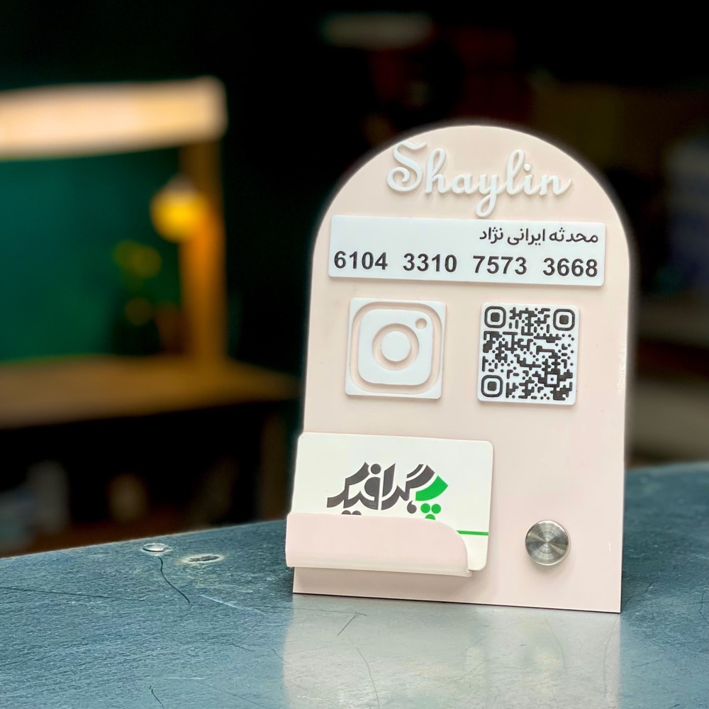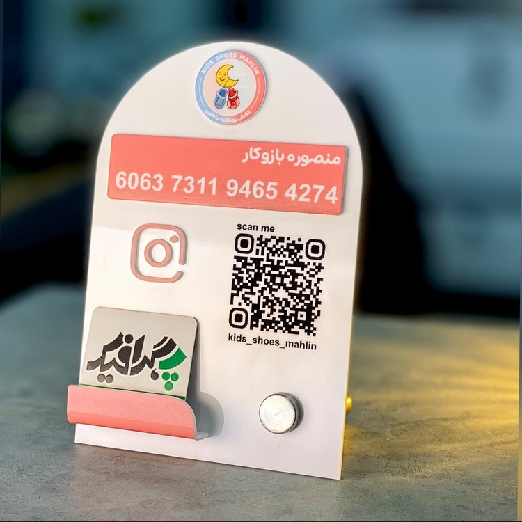 در بخش جلویی استند، علاوه بر جای کارت ویزیت / کارت بانکی، یک QR کد اختصاصی تعبیه شده که میتواند مستقیماً به پیج اینستاگرام، وبسایت یا صفحه پرداخت آنلاین شما لینک شود.